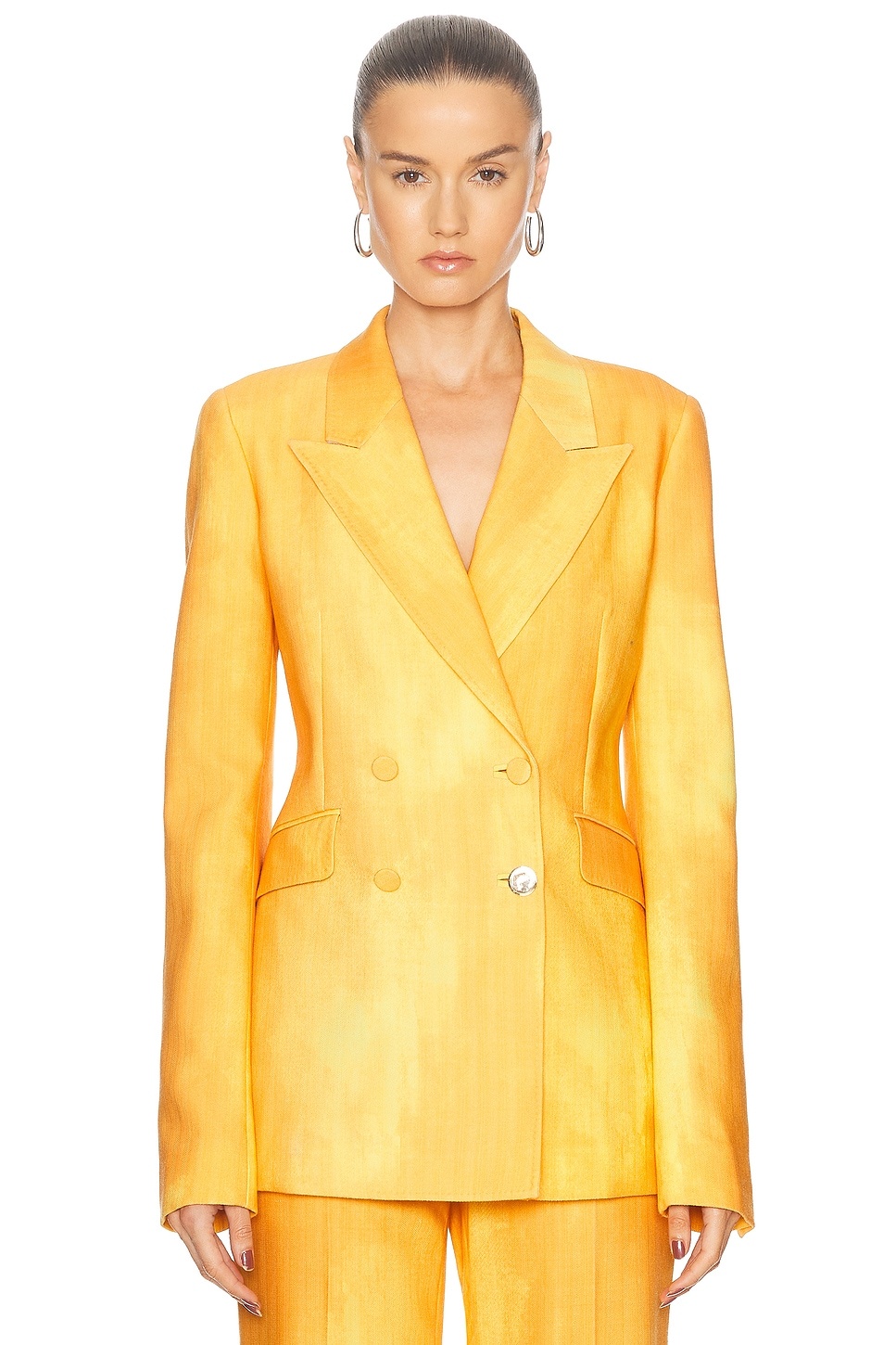 Details - Self: 98% wool, 2% elastane - Lining: 100% cupro - Made in Italy - Dry clean only - Double-breasted front button closure - Side flap pockets - Buttoned cuffs and back vent - Twill fabric - Item not sold as a set - Our Style No. GABF-WO19 - Manufacturer Style No. 3255113-W163
