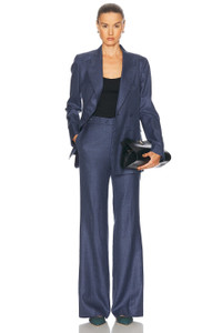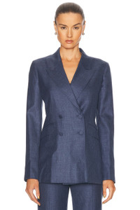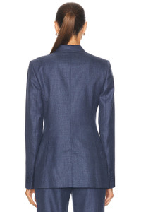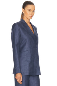 Angela Blazer in Denim Virgin Wool Silk with Linen