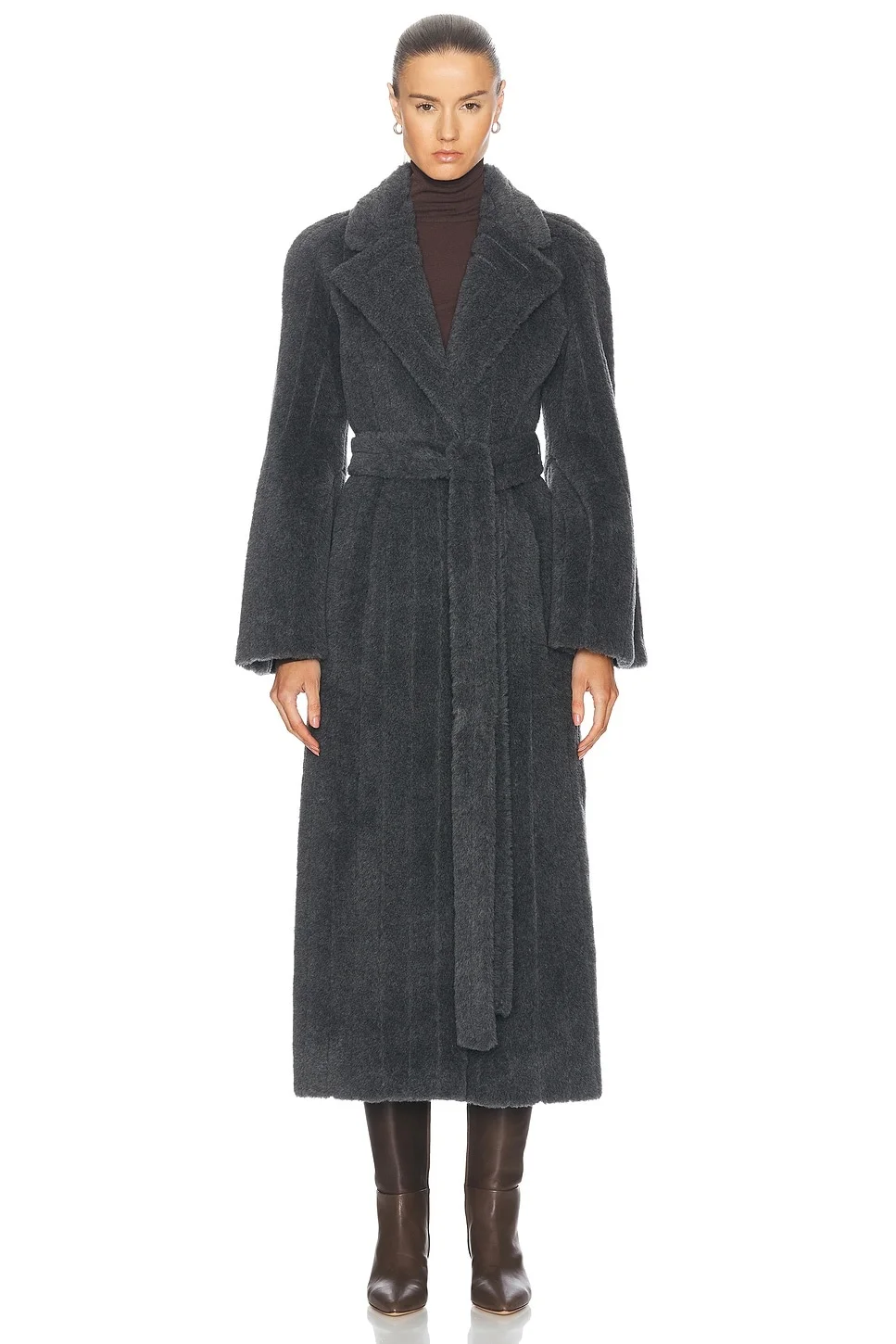 Details - Self: 77% wool, 15% silk, 8% cashmere - Lining: 100% silk - Made in Italy - Dry clean only - Front hook and eye closure - Side seam pockets - Fuzzy faux fur with detachable faux fur belt - Our Style No. GABF-WO20 - Manufacturer Style No. 1246039-W161