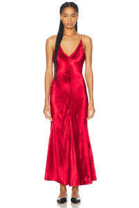 Details - Self & Lining: 100% silk - Made in Italy - Dry clean only - Fully lined - Hidden back zipper closure - Deep v-neckline at front and back - Velvet fabric with fishtail detail at back - Our Style No. GABF-WD51 - Manufacturer Style No. 1244148-S116