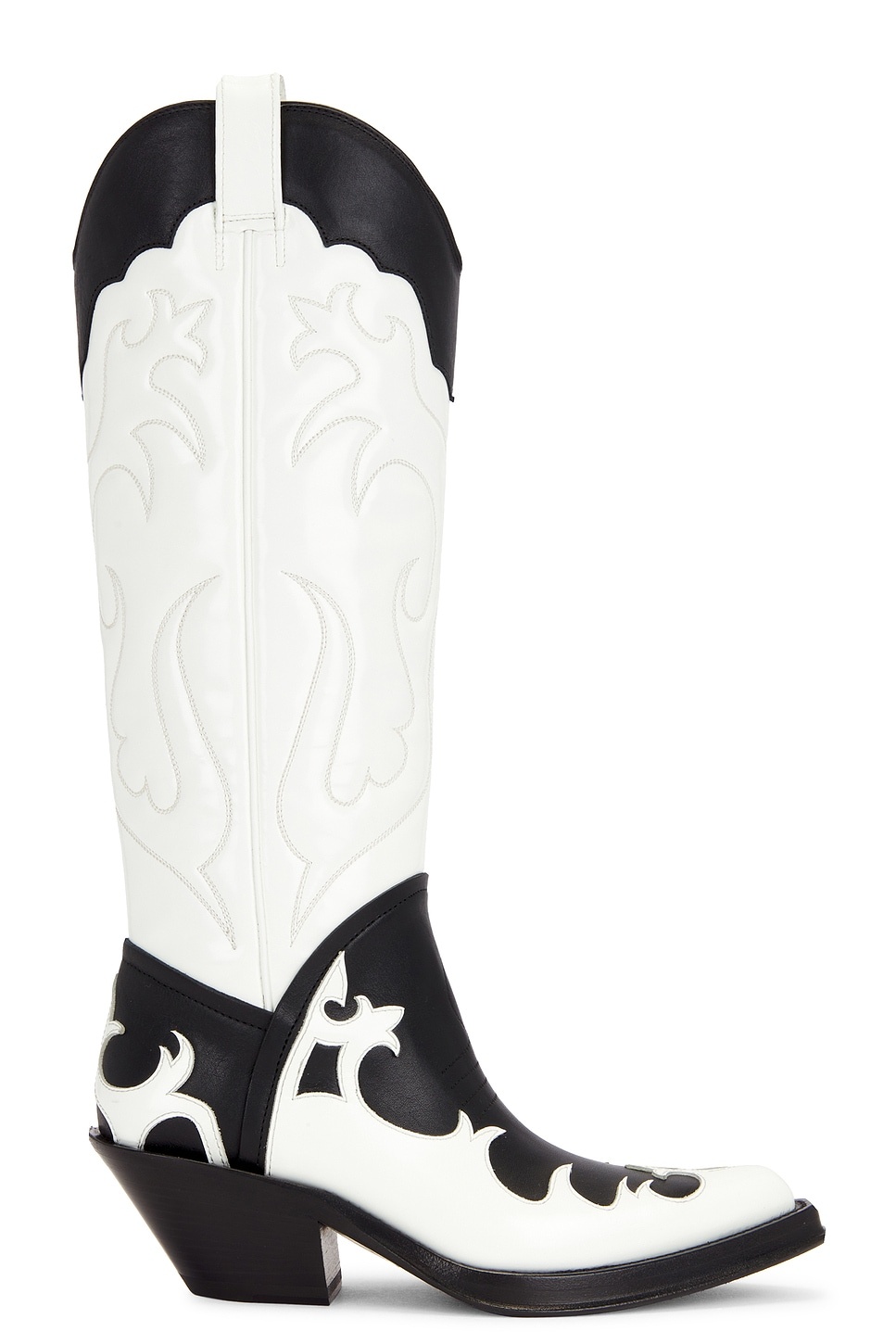 Capitana Cowboy Boot in White & Black Pearlized Leather