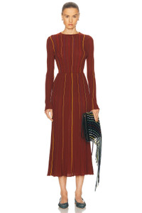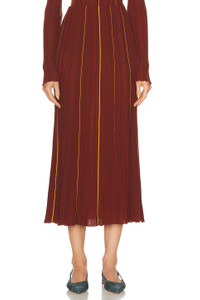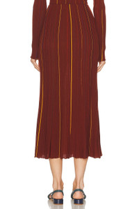 Celeano Pinstripe Knit Midi Skirt Burnt Sienna Merino Wool