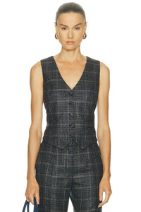 Coleridge Vest in Charcoal Multi Wool Silk Clubcheck Plaid