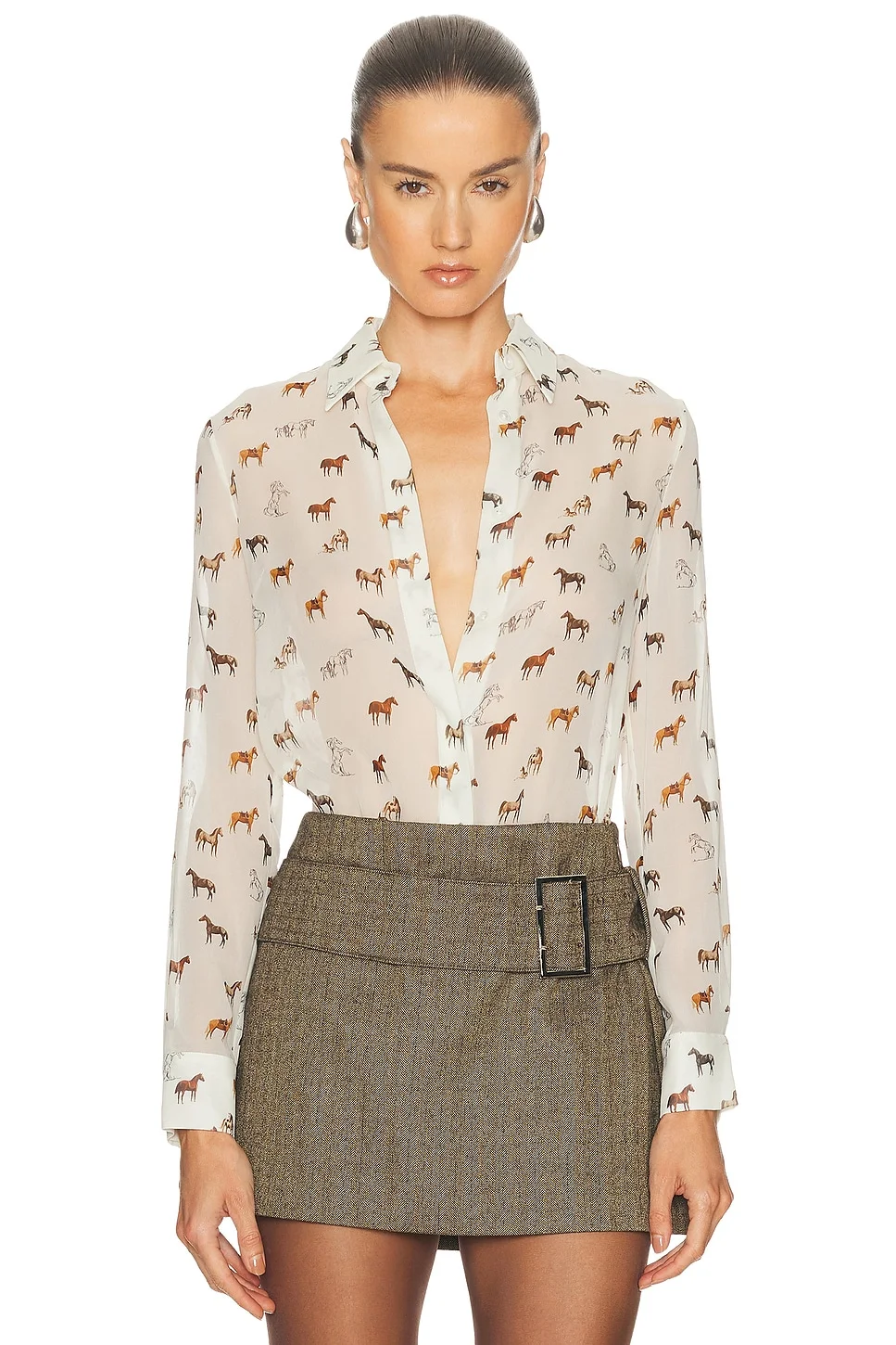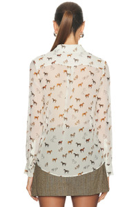 Henri Horse-Print Chiffon Button-Down Blouse