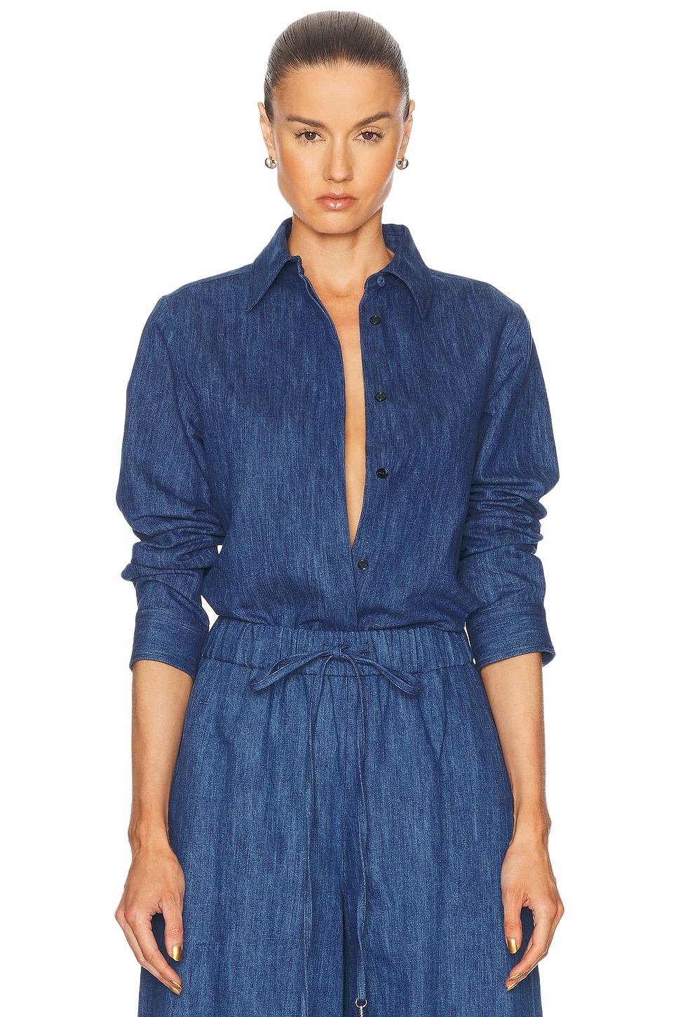 Judie Shirt in Medium Blue Recycled Cotton Linen Denim