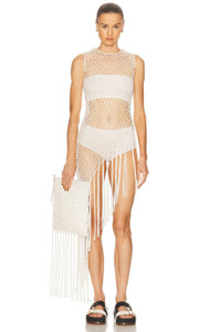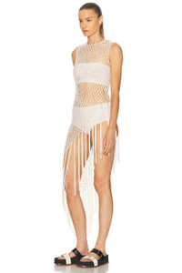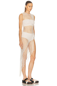Nabia L Fringe Macrame Maxi Dress in Ivory Silk