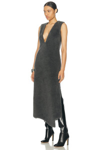 Details - Self: 77% virgin wool, 15% silk, 8% cashmere - Lining: 100% silk - Made in Italy - Dry clean only - Fully lined - Hidden back zipper closure - Plunging neckline - Side slit pockets - Side slits with asymmetrical hem design - Our Style No. GABF-WD49 - Manufacturer Style No. 1244238-W161