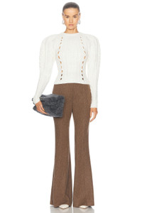 Petersburg Cashmere Cable Knit Puff-Sleeve Sweater