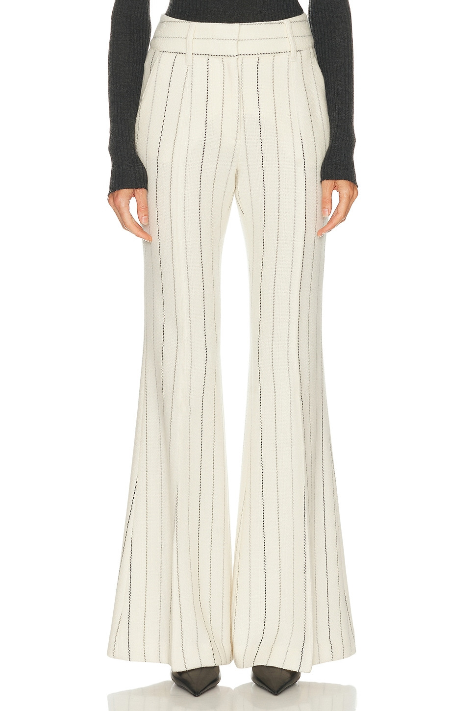 Rhein Flare Pant in Ivory Multi Pinstripe Wool Cashmere