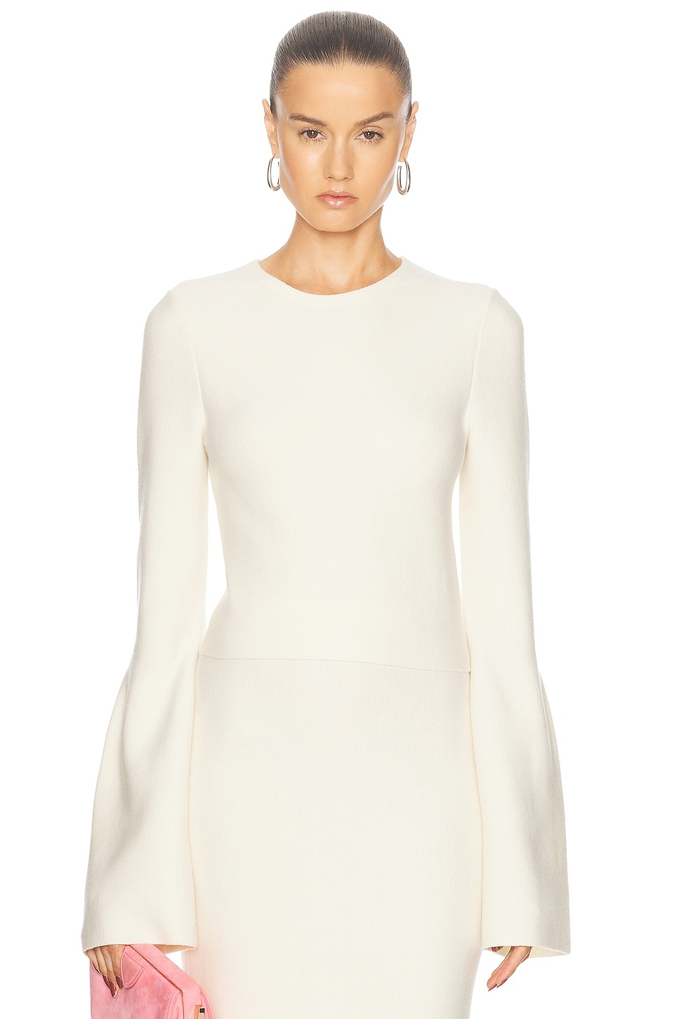 Details - 90% wool, 10% cashmere - Made in Italy - Dry clean only - Back partial zipper closure - Bell sleeve design - Midweight knit fabric - Item not sold as a set - Our Style No. GABF-WS54 - Manufacturer Style No. 3259725-A077