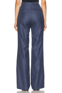 Vesta Flared Pant in Denim Virgin Wool Silk with Linen
