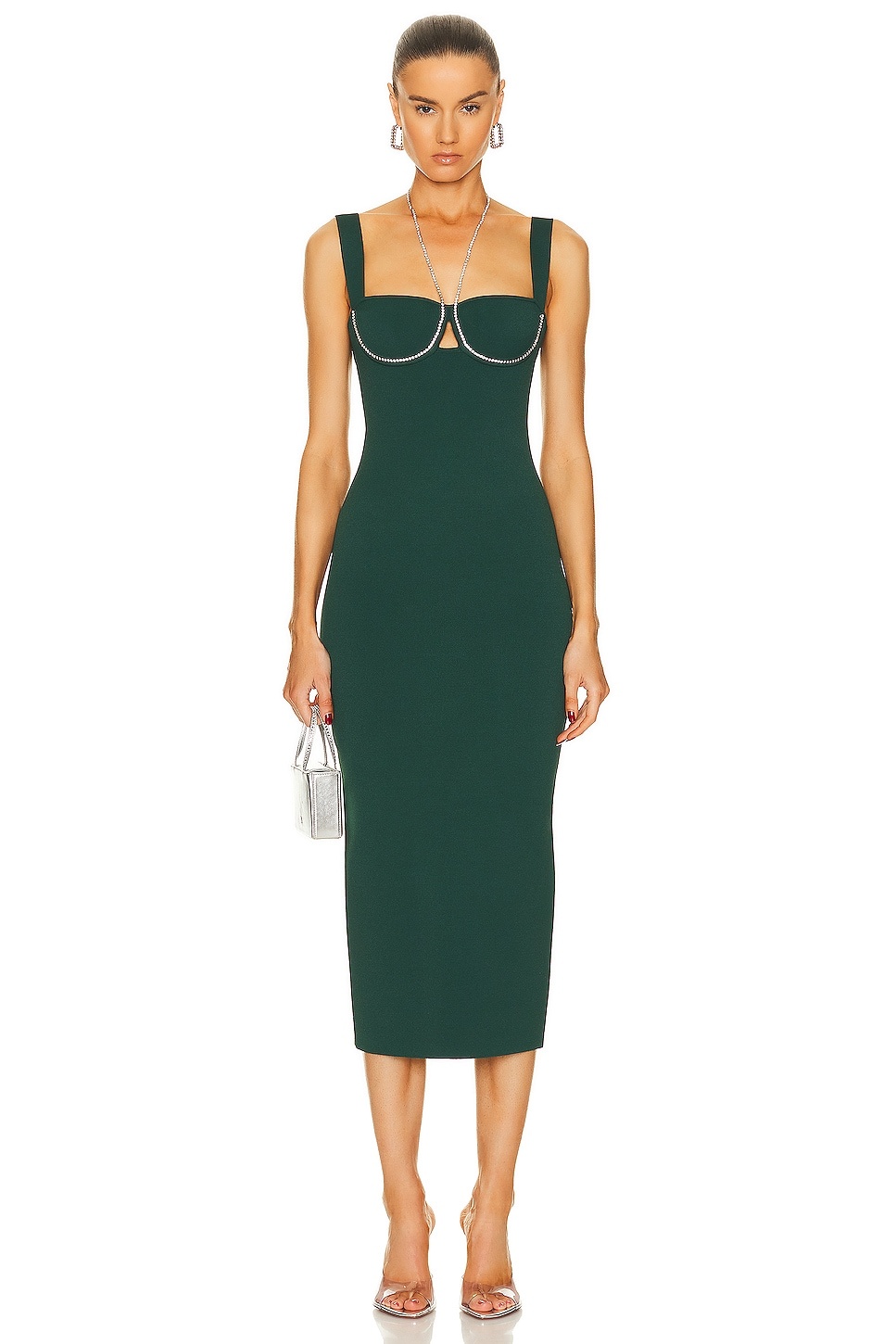 Details - 82% viscose, 17% polyester, 1% polyamide - Made in Italy - Dry clean only - Unlined - Pull-on styling - Unpadded underwire cups - Knit fabric with crystal-embellished halterneck tie detail - Our Style No. GALF-WD159 - Manufacturer Style No. CD8146