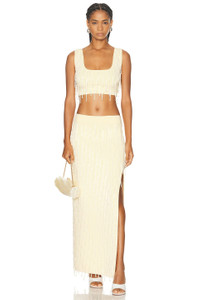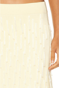 Details - 67% viscose, 21% polyamide, 12% elastane - Made in China - Dry clean only - Unlined - Pull-on styling with elastic waistband - Heavy weight beaded embellished knit fabric - Side slit design - Item not sold as a set - Our Style No. GALF-WQ7 - Manufacturer Style No. PF24SK8467