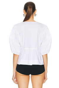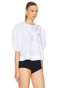COTTON POPLIN PEPLUM TIE BLOUSE