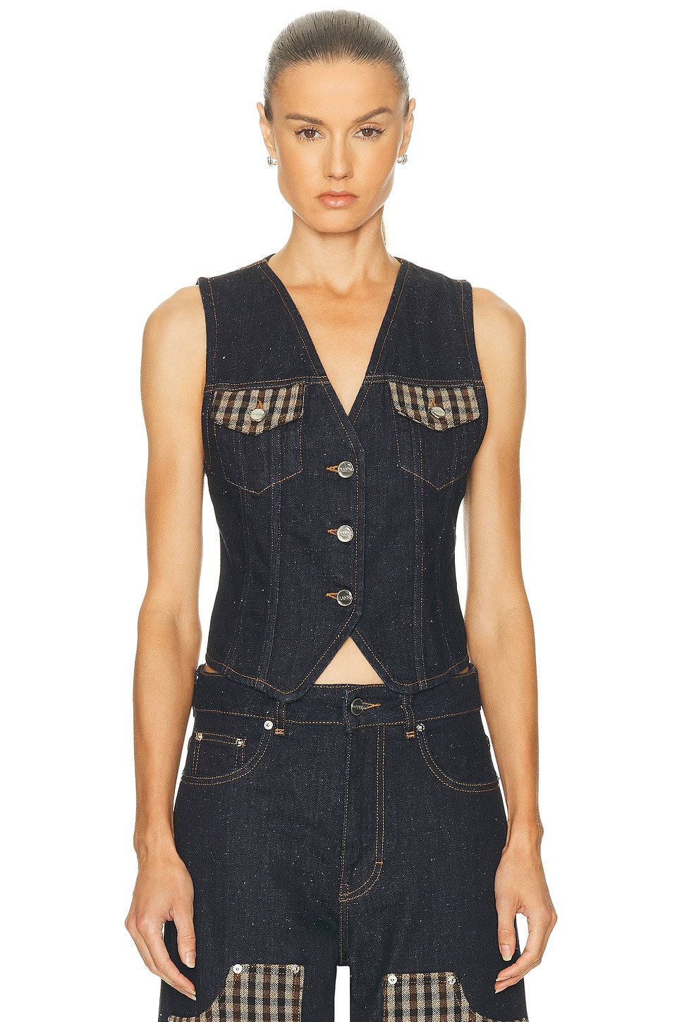 Details - 100% cotton - Dry clean only - Front button closure - Breast flap pockets with contrast fabric detail - Denim fabric - Item not sold as a set - Made in Italy - Our Style No. GANF-WS185 - Manufacturer Style No. J1764