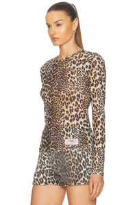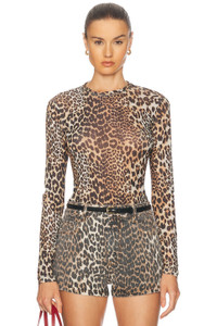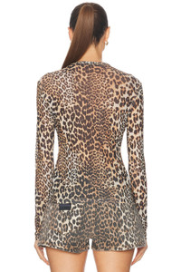 LEOPARD PRINTED MESH LONG SLEEVE BLOUSE