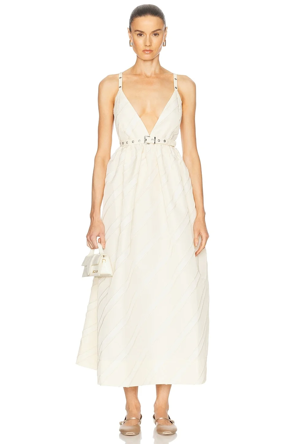 Belted Eyelet-embellished Striped Taffeta Midi Dress