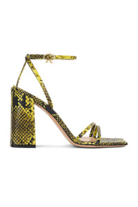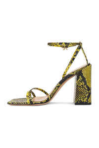 Details - Snake embossed leather upper with leather sole - Made in Italy - Ankle buckle closure - Leather footbed and lining - Square toe with block heel - Approx 100mm/ 4 inch heel - Our Style No. GIAN-WZ723 - Manufacturer Style No. G32336-95RIC-BON