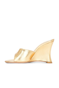 Details - Metallic nappa upper with leather sole - Made in Italy - Slip-on styling - Leather footbed and lining - Peep toe with wedge heel - Approx 75mm/ 3.5 inch heel - Our Style No. GIAN-WZ781 - Manufacturer Style No. G10095-95RIC-NPS