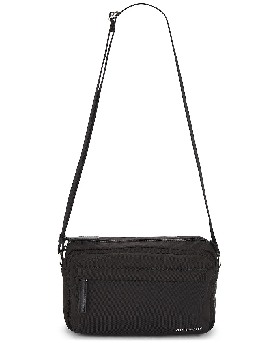 Details - Twill exterior and ripstop interior - Top zip closure - One main compartment - One exterior pouch pocket and one exterior slip pocket - Metal logo detail - Measures approx 25 cm W x 15 cm H x 10 cm Dbr>Shoulder strap with a 41 cm drop - Made in Italy - Our Style No. GIVE-MY324 - Manufacturer Style No. BKU05CK1ZL001