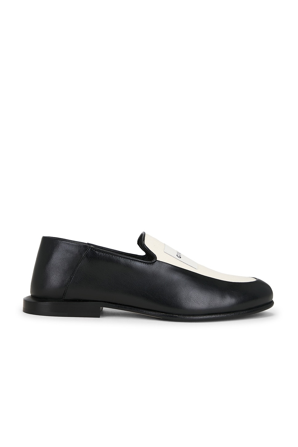 LABEL LOAFERS IN LEATHER AND CANVAS