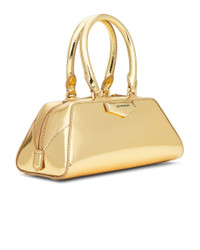 Details - Laminated calfskin leather with mirror finish and fabric lining - Dual top zipper closure - One main compartment - Gold-tone metal; pentagonal patch with embossed GIVENCHY logo - Leather top handles with metal D-rings - Measures approx 24 cm W x 11 cm H x 11 cm D - Detachable and adjustable leather shoulder strap with a 52 cm-59 cm drop - Made in Italy - Our Style No. GIVE-WY1282 - Manufacturer Style No. BB5146B2AS715