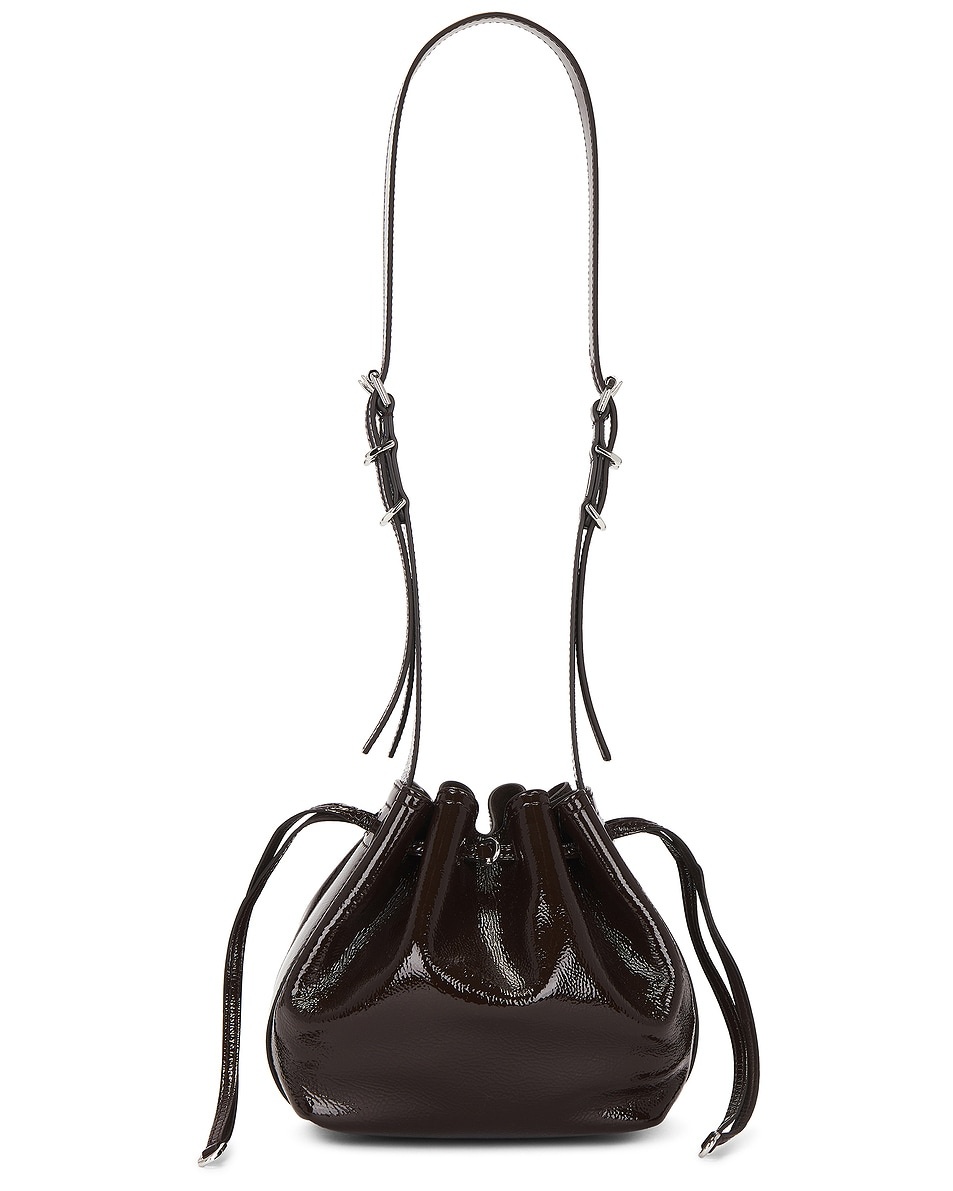 Details - Crinkled patent leather exterior with suede lining - Made in Italy - Side drawstring closures - One main compartment - Silver-tone rings with chain shoulder strap - Measures approx 22 cm W x 16 cm H x 6 cm D - Adjustable shoulder strap with a 33 cm drop - Our Style No. GIVE-WY1267 - Manufacturer Style No. BB510XB25Y202