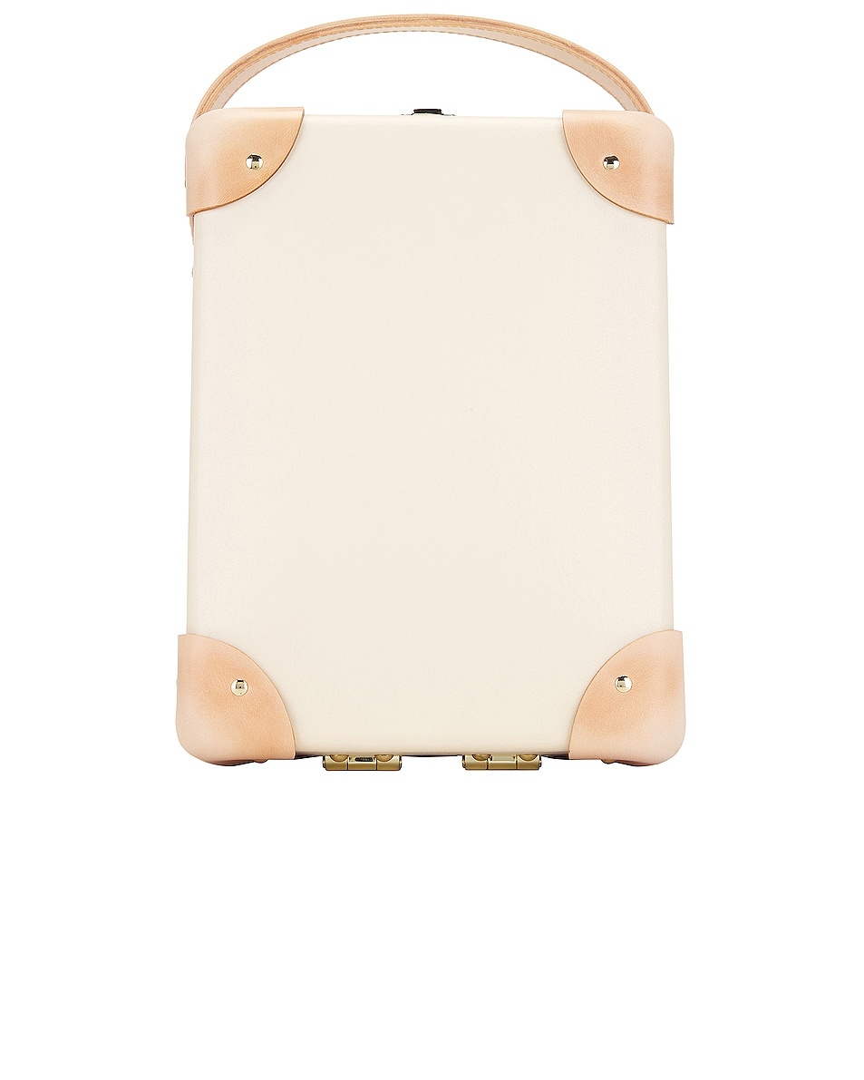Details - Vulcanized fiberboard case with nickel hardware and leather trims - Made in England - Hinge top with latch closure - Three interior slots with compartments for watches on a removable tray - Case measures approx 6.3" W x 8.9" H x 2.5" D - Top handle with a 2.5" drop - Our Style No. GLOB-MA5 - Manufacturer Style No. GTSAFIN3WC