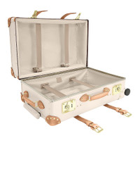Details - Exterior: Vulcanised fibreboard, ABS trolley handle, vegetable tanned leather corners and handle & metal hardware - Interior: Webbing straps with brass or nickel hardware, vegetable tanned leather interior hinges & brass metal plaque and serial number - Made in United Kingdom - Each case comes with carbon steel locks so you can travel with peace of mind. Turn to a North-South position to unlock and East-West to lock. - One main compartment - Measures approx 26.3" W x 16.1" H x 10.6" D - Our Style No. GLOB-MY11 - Manufacturer Style No. SAFIVNA2II1NA26CI-G-TSA