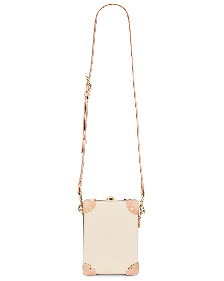 Details - Vulcanized fibreboard and vegetable tanned leather corners exterior with water resistant interior - Made in United Kingdom - Top clasp closure - One main compartment - Detachable and adjustable shoulder strap - Measures approx 5.75" W x 7.5" H x 2.5" D - Detachable and adjustable shoulder strap with a 22" drop - Our Style No. GLOB-MY10 - Manufacturer Style No. GTSAFINMS