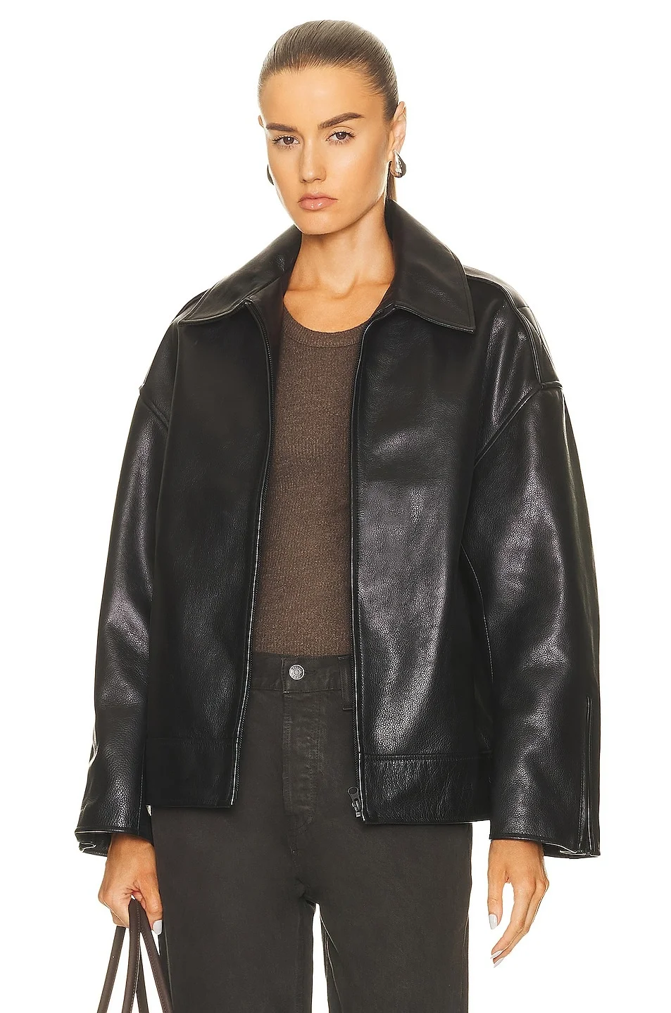 Details - Self: 100% cow nappa leather - Lining: 100% polyester - Made in India - Professional leather clean only - Front zipper closure - Side slant pockets - Zipper detail on sleeves - Our Style No. GRLR-WO71 - Manufacturer Style No. GROW78-F23