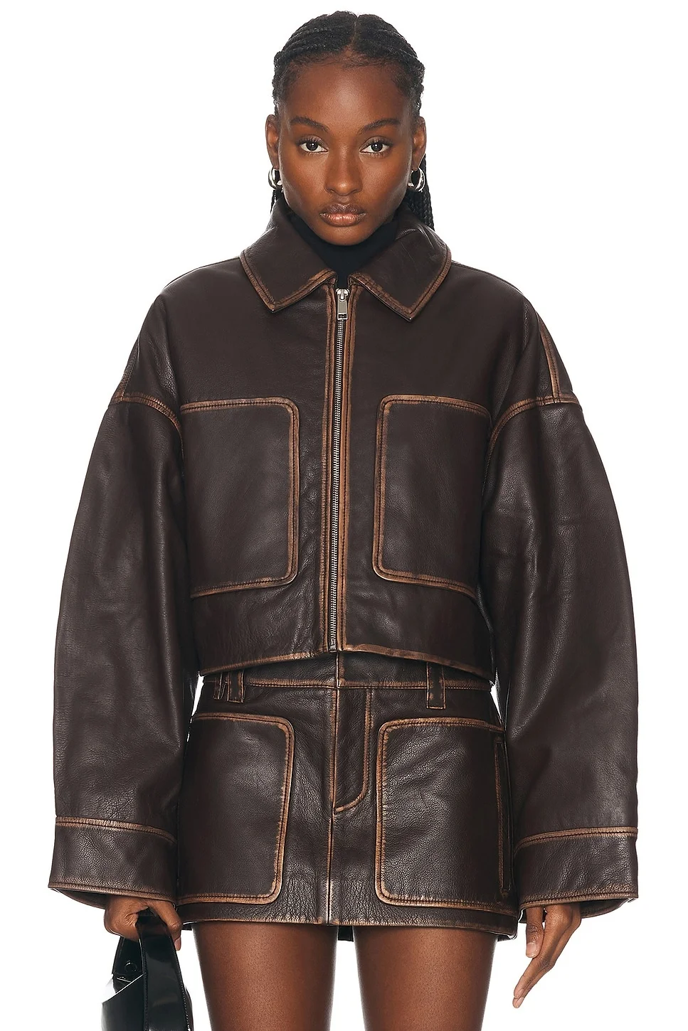Details - Self: 100% cow leather - Lining: 100% polyester - Made in India - Professional leather clean recommended - Front zipper closure - Side seam pockets - Button cuffs - Heavyweight leather fabric - Item not sold as a set - Our Style No. GRLR-WO116 - Manufacturer Style No. GROW90 F24