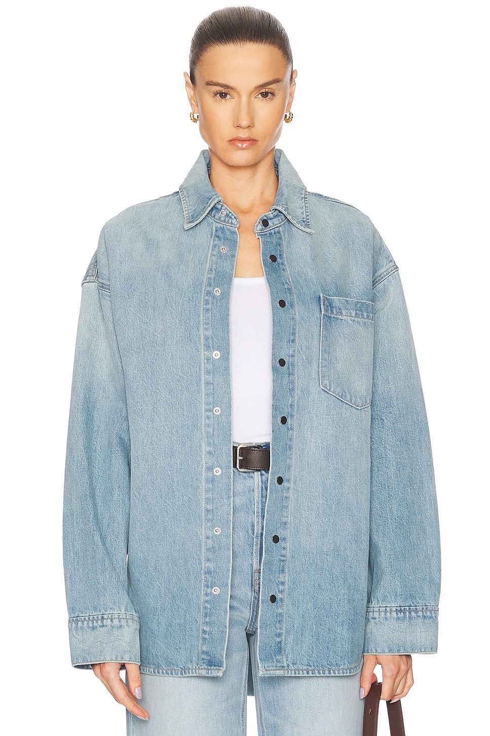 Details - 100% cotton - Machine wash - Front snap button closure - Breast slip pocket - Snap button cuffs - Intentional fading - Midweight denim fabric - Made in US - Our Style No. GRLR-WO129 - Manufacturer Style No. GF48269862109