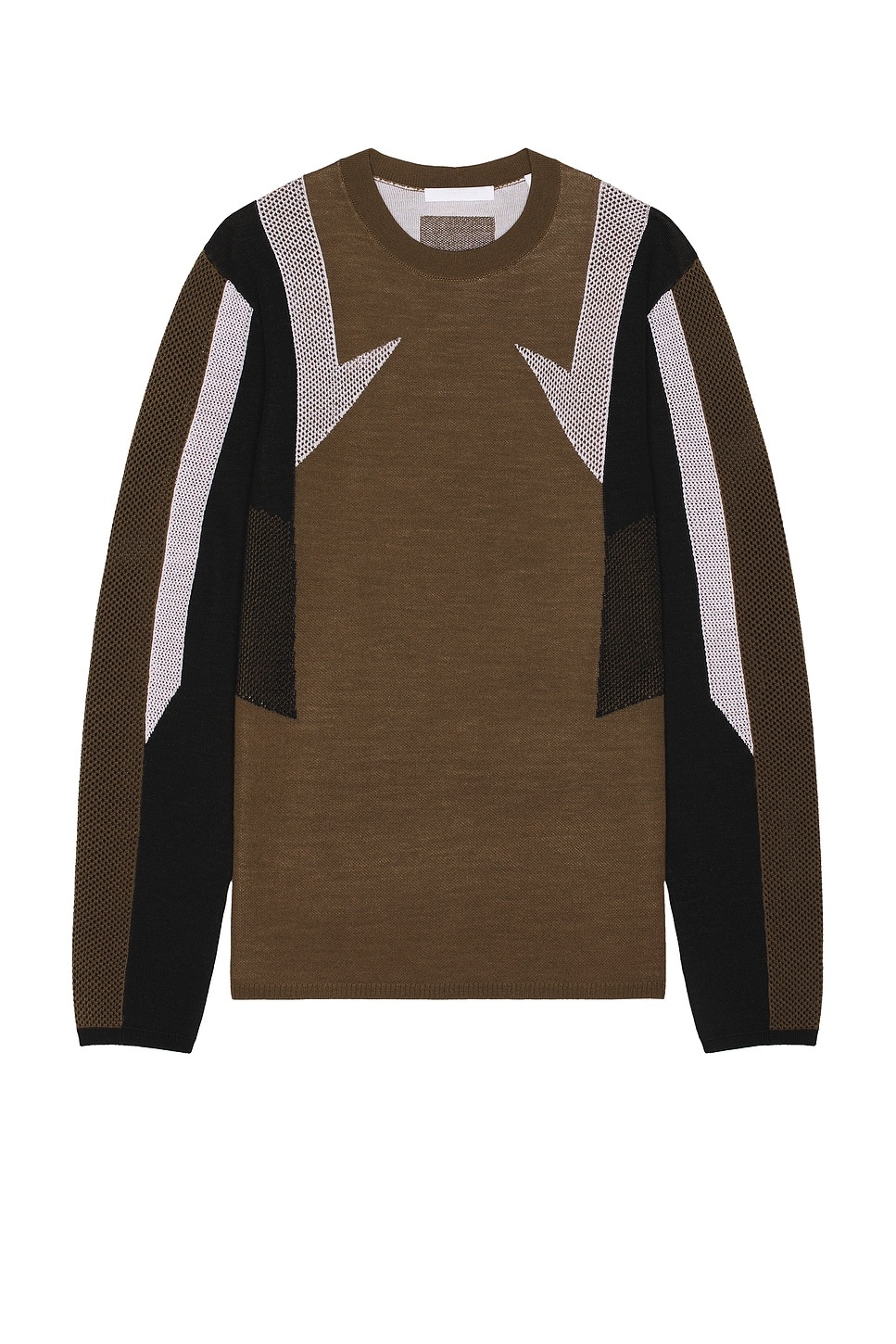 Details - 93% wool, 6% polyamide, 1% spandex - Made in China - Dry clean only - Open knit accents - Colorblocked design - Midweight fully fashion knit fabric - Our Style No. HLAN-MS140 - Manufacturer Style No. P01HM702