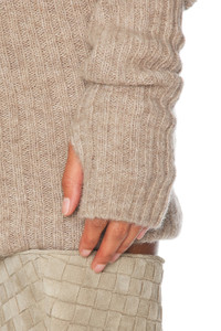 Details - 35% polyester, 33% alpaca, 32% wool - Made in China - Dry clean only - Unlined - Pull-on styling - Turtleneck design - Ribbed knit fabric with thumb-hole accent - Our Style No. HLSA-WD135 - Manufacturer Style No. HED108 H24