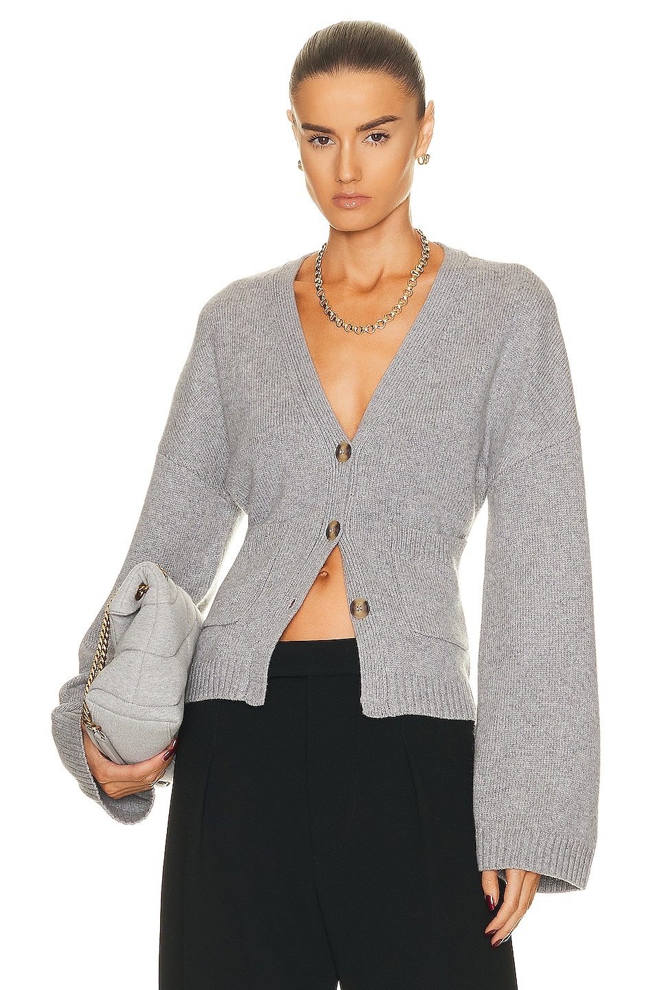 Details - 35% nylon, 30% wool, 30% viscose, 5% cashmere - Made in China - Hand wash - Front button closure - Front pockets - Drop shoulders and wide sleeves - Midweight knit fabric - Our Style No. HLSA-WK18 - Manufacturer Style No. HEK24 F22