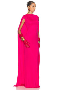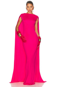 Details - 100% viscose - Hand wash - Unlined - Hidden back zipper closure - Attached cape design - Slinky jersey fabric with back vent - Made in China - Our Style No. HLSA-WD235 - Manufacturer Style No. HED10023 F25