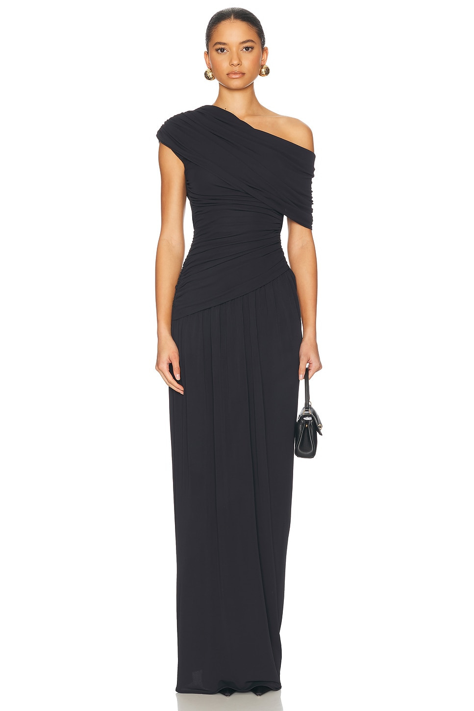 Details - 100% viscose - Made in Turkey - Dry clean only - Unlined - Hidden side zipper closure - Off-shoulder design - Jersey fabric with ruching detail - Our Style No. HLSA-WD169 - Manufacturer Style No. HED131 S25