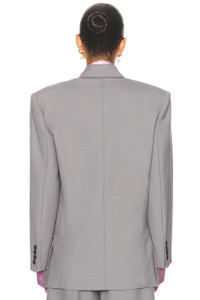 Details - Self: 50% wool, 48% polyester, 2% elastane - Lining: 55% polyester, 45% viscose - Dry clean only - Front double-breasted button closures - Structured padding at shoulders - Front flap pockets - Buttoned cuffs - Suiting fabric - Made in China - Our Style No. HLSA-WO66 - Manufacturer Style No. HEOW10013 F25