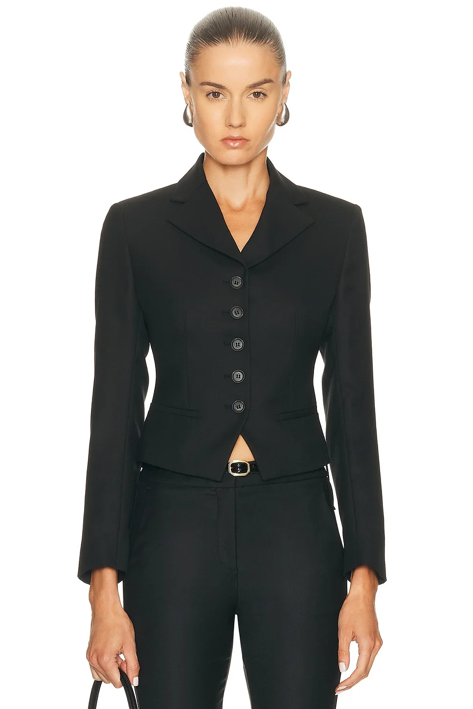 Details - Self: 55% recycled polyester, 45% virgin wool - Lining: 100% viscose - Dry clean only - Front button closure - Front faux welt pockets - Padded shoulders - Notched lapel collar - Cropped fit - Midweight suit fabric - Made in Portugal - Our Style No. HGMF-WO7 - Manufacturer Style No. 253F204