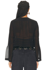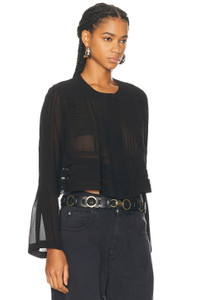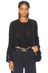 Details - 100% silk - Dry clean only - Front snap button closure - Cropped fit - Midweight georgette fabric - Garment is made with a semi-sheer fabric, undergarments can show through - Made in India - Our Style No. ISAB-WS502 - Manufacturer Style No. HT0700FA-C3J06I
