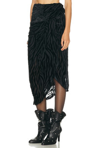 Details - Self: 64% viscose, 36% silk - Lining: 96% silk, 4% elastane - Dry clean - Fully lined - Pull-on styling with elastic waistband - Velvet burnout fabric with hi-low surplice hem - Item not sold as a set - Made in Romania - Our Style No. ISAB-WQ163 - Manufacturer Style No. JU0429FB-C4J24I