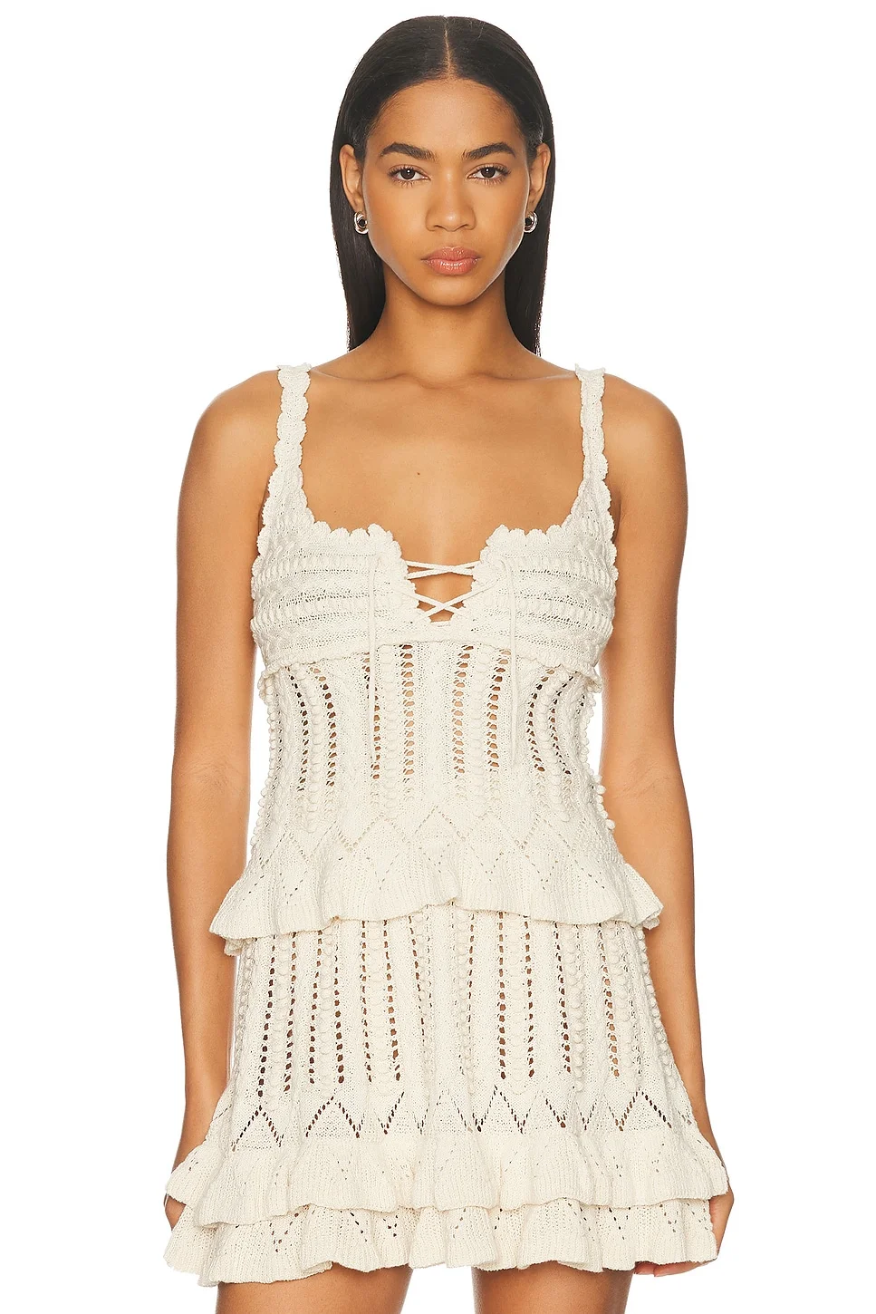 Details - 100% cotton - Hand wash - Pull-on styling - Front lace-up tie detailing - Scalloped hem - Midweight knit fabric - Item not sold as a set - Garment is made with a semi-sheer fabric, undergarments can show through - Made in China - Our Style No. ETOI-WS404 - Manufacturer Style No. 26PPU0854FA-D1L04E