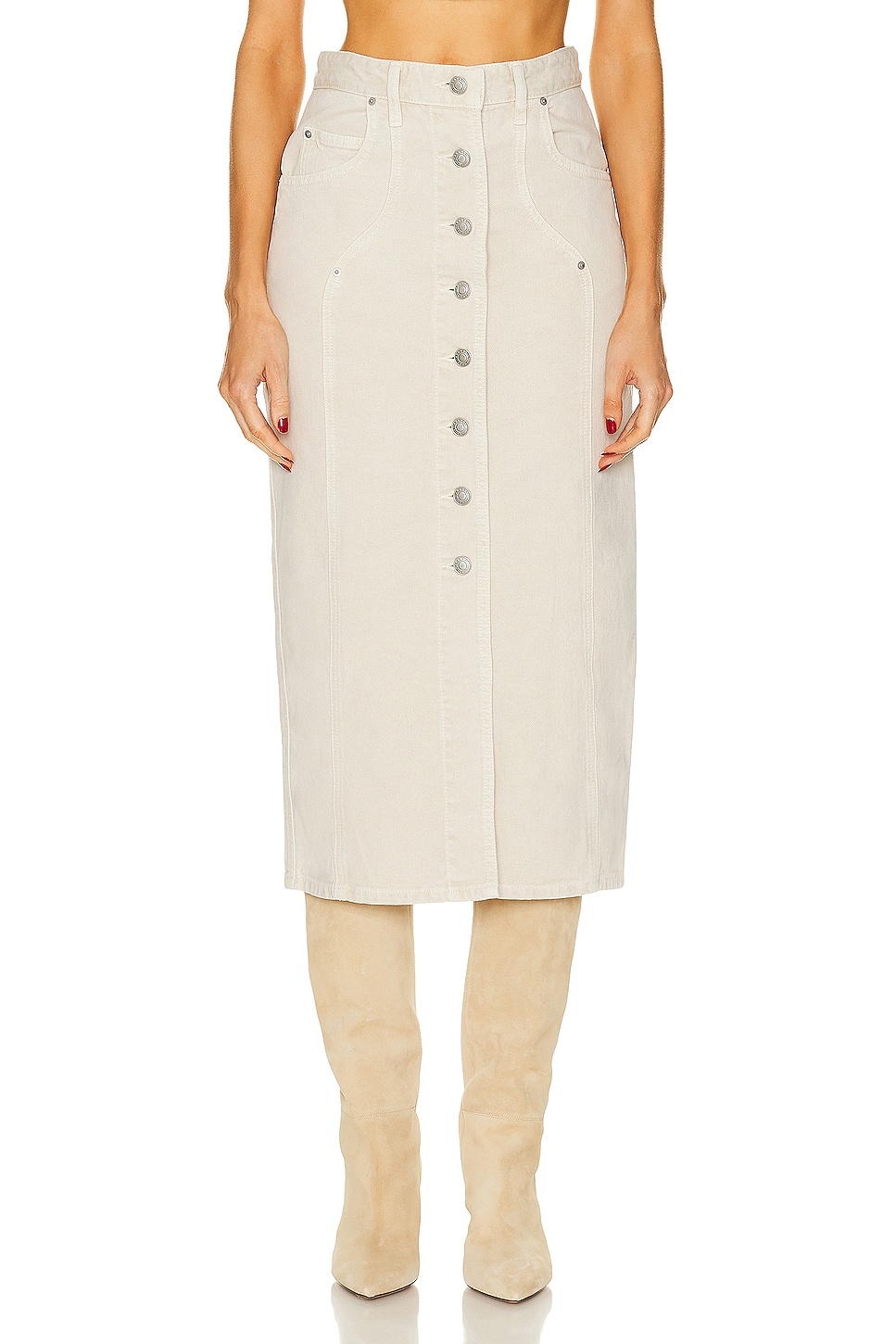 Details - Self: 80% cotton, 20% hemp - Lining: 100% cotton - Made in Morocco - Machine wash - Unlined - Front button closure - 5-pocket styling - Rigid denim fabric with back Isabel Marant patch - Our Style No. ETOI-WQ111 - Manufacturer Style No. JU0073FB-B1H02E