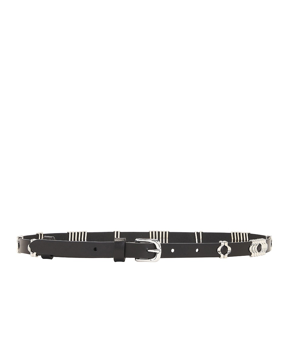 Details - Cowhide belt with silver-tone zamak hardware - Made in Italy - Adjustable buckle closure - Size 70 measures approx 25-74 cm L x 2 cm H - Our Style No. ISAB-WA187 - Manufacturer Style No. CE230BFA-A1A01A