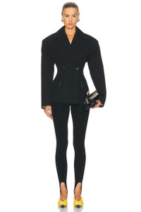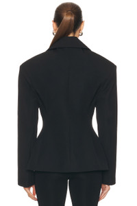 Details - Self: 100% wool - Lining: 52% viscose, 48% cotton - Dry clean only - Front double-breasted closure - Structured padding at shoulders - Front flap pockets - Darted waist - Twill fabric - Made in Romania - Our Style No. JQUF-WO88 - Manufacturer Style No. 251JA087-1541