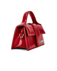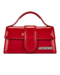 Details - Patent leather exterior with twill lining - Made in Italy - Flap top with invisible magnetic button closure - One main compartment - Gold-tone metal Jacquemus logo at front - Back card slot - Structured top handle with detachable and adjustable shoulder strap - Measures approx 7" W x 3.25" H x 2.25" D - Shoulder strap with a 19" drop - Top handle with a 2" drop - Our Style No. JQUF-WY324 - Manufacturer Style No. 23H213BA006-3128