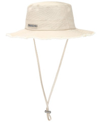Details - 100% cotton - Made in Bulgaria - Hand wash - Adjustable chin drawstring - Silver JACQUEMUS logo - Adjustable drawcord back - Frayed edges - Brim measures appprox 8 cm in length - Our Style No. JQUF-MA34 - Manufacturer Style No. 22EACU00002AE00014