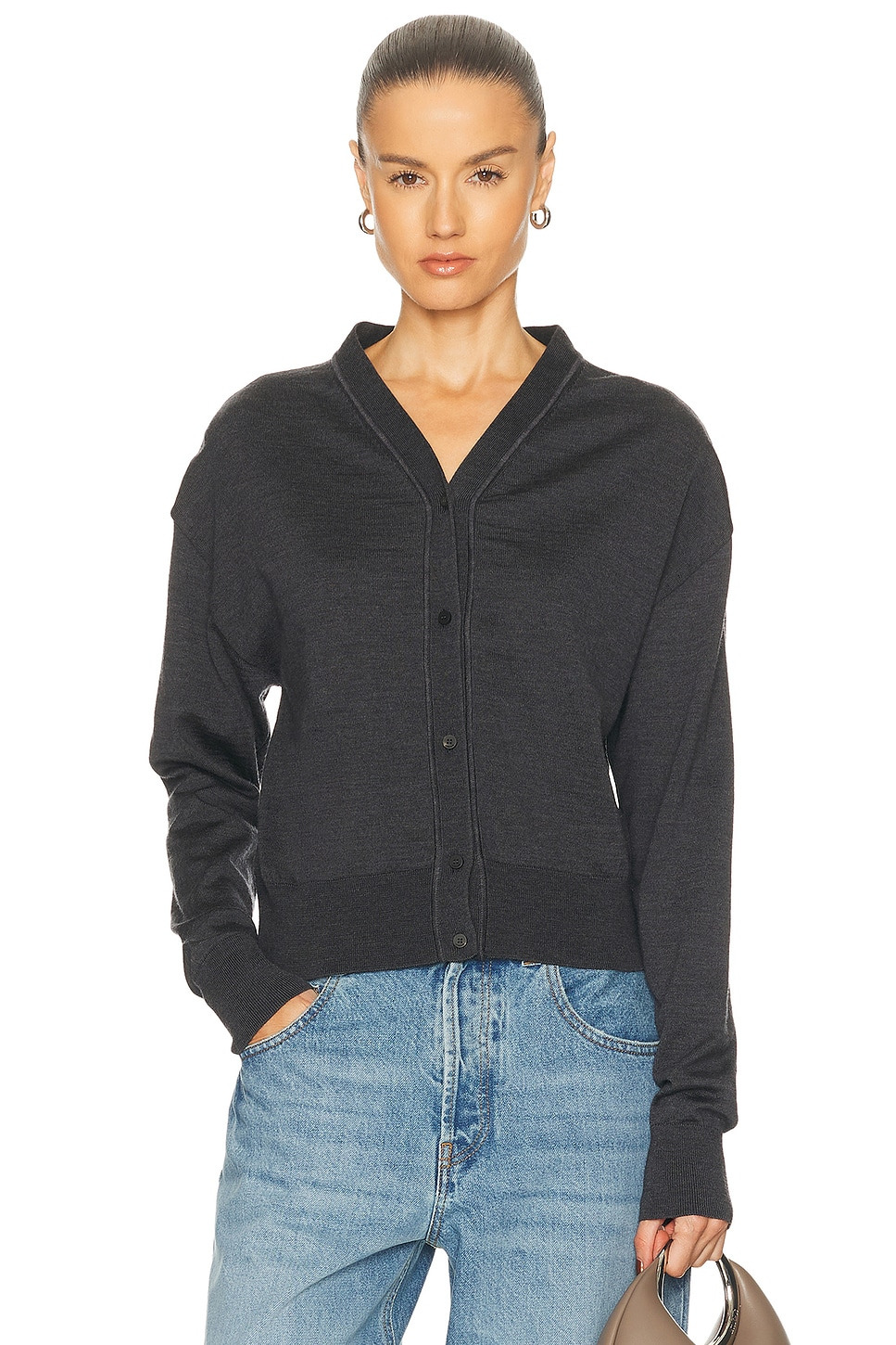 Details - 96% merino wool, 4% polyamide - Made in Portugal - Hand wash - Front button closure - Lightweight knit fabric - Ribbed hem - V-neck - Our Style No. JQUF-WK88 - Manufacturer Style No. 25HCDW00816AK00299