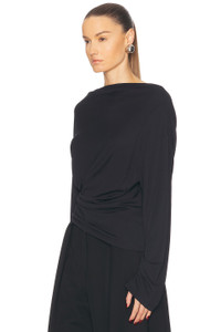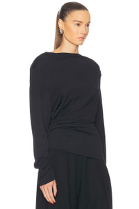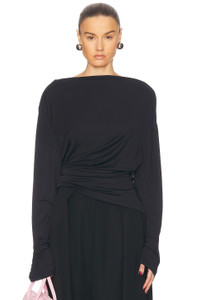 Details - 82% viscose, 18% polyamide - Made in Portugal - Hand wash - Pull-on styling - Draped fabric at back - Slinky jersey fabric - Our Style No. JQUF-WS324 - Manufacturer Style No. 251TO121-1026
